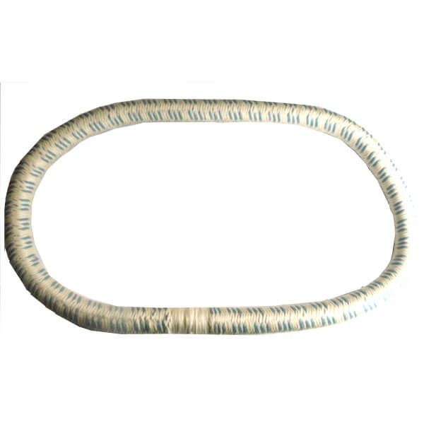 An endless elastic ring composed of multiple strands of natural rubber, wound into a circular skein. Braided cover is high grade yarn. Manufactured to meet specification MIL-C-5651B, Type II. Shock cord is used in landing gear to reduce shock transmitted to fuselage while landing and taxiing and on other shock mounting applications. Color coded to insure fresh stock.
