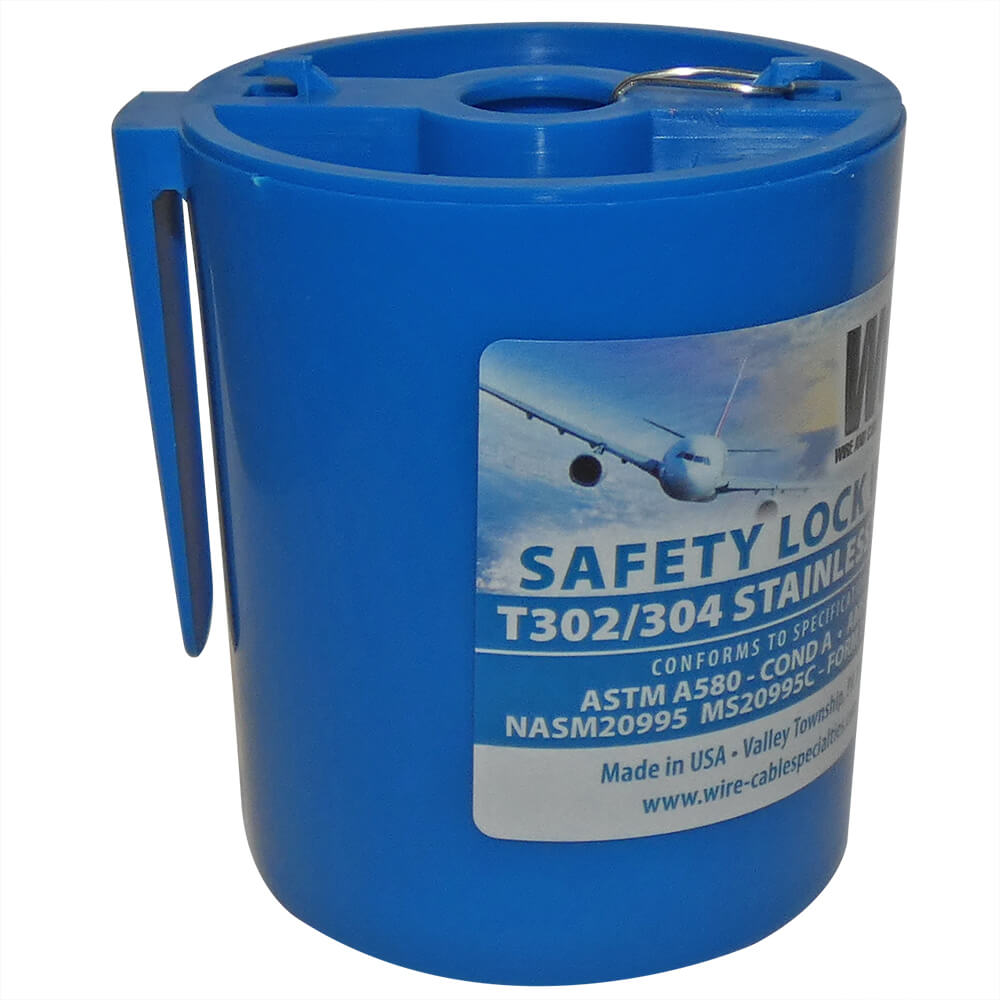 Stainless steel safety wire furnished in convenient 1 lb. dispensing container. Available in Type 302/304 stainless steel (soft temper) per MS20995.