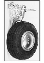 | An inexpensive 8" pneumatic tailwheel assembly which is steerable and full swiveling, with new improved single arm shimmy-free fork. All working parts heat treated. |