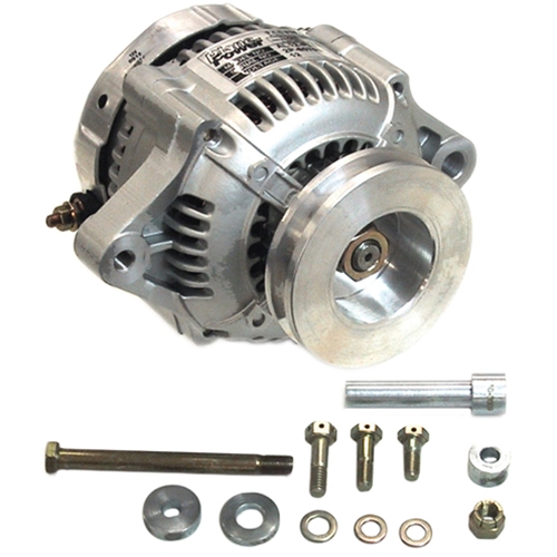 Small, light and powerful, this alternator took about an hour to install (the old alternator had been removed) and aligned perfectly with existing parts. It uses the existing regulator and came on line instantly, kicking the meter up to 30+ amps. It will likely outlast me.