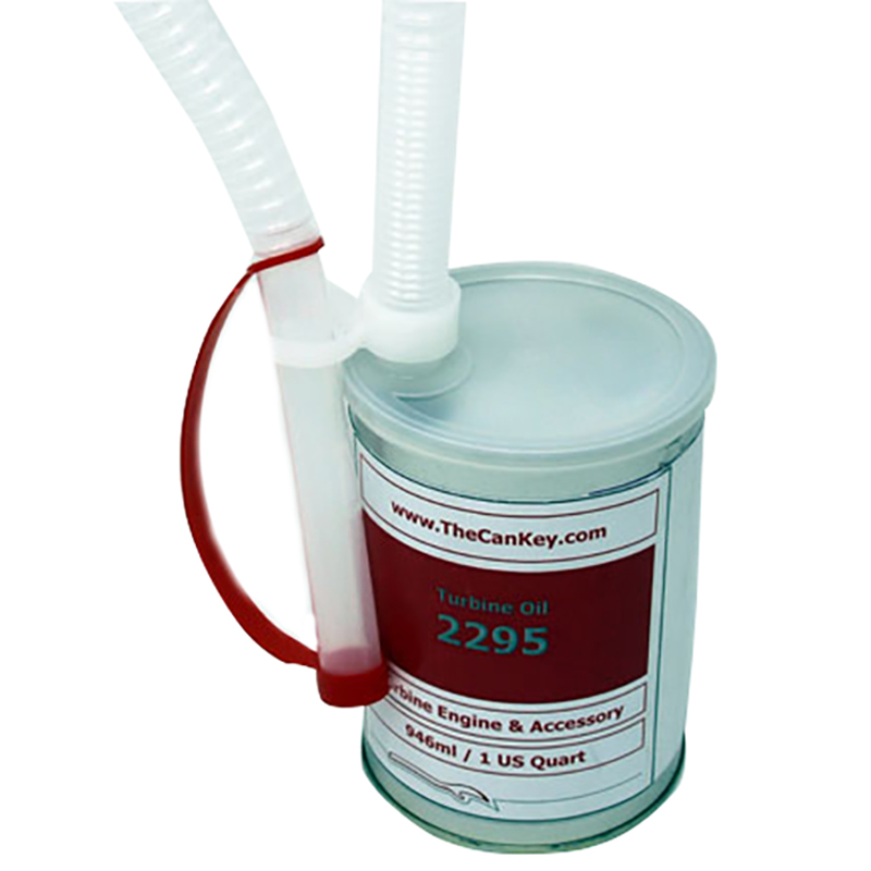 Open half-used oil bottles and cans can be stored in the storage room or aircraft without risk of oil leaking out. The flex hose clip ensures a tight seal of the flex hose to the cap stud, and also secures the flex hose to the bottle or can to minimize storage space when not in use. The red cap seals the flex hose and ensures a tight seal of the flex hose end. More flex hoses can be connected to increase the reach. The flex hose can be removed if desired. The red flex hose cap is then installed on the cover stud and seals to avoid leakage and FOD. No more: Spilling into the nacelle by back- or overflowing ordinary funnels. Cleaning dirty funnels or cut open soda bottles before pouring oil. Throwing ½ quart oil away or risking FOD in an open oil can. Spilling of oil, by not reaching far enough into the oil filler. |