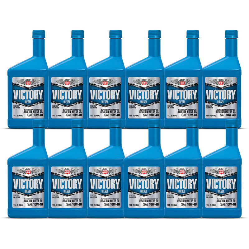 Phillips 66® Victory Diesel Aviation Oil 10W-40 is a fully synthetic multi-viscosity engine oil specifically designed for air and liquid cooled compression ignition diesel type piston aviation engines. It contains both detergents and dispersants to help keep engines clean as well as robust antiwear additives to protect engine components. The detergent and dispersant containing formulation helps minimize the formation of engine sludge, varnish, piston deposits and combustion chamber deposits resulting in a much cleaner engine. It is specifically formulated to protect both 2-stroke and 4-stroke compression ignition aviation engines. This oil has a high viscosity index and low pour point, allowing its use over a wide temperature range. Additionally, it contains a specially balanced anti-foam additive to protect against air entrainment and foam generation. |