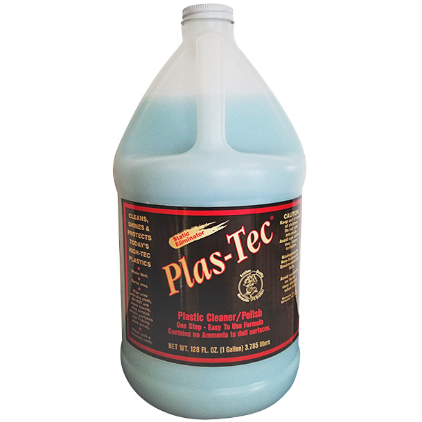 Plas-TecŪ cleans, shines, and protects todays high-tech plastics. Plas-TecŪ is a non-aggressive, optically clear cleaner that lifts fingerprints and smudges, leaving a protective, anti-static coating that resests dirt build-up. Plas-TecŪ is excellent for use on acrylic sheet, Lexan windshields and windows as well as aircraft instrument panels. Also an effective cleaner for computer screens, scanners, copiers, laptops, phones, TV and video equipment, dashboards, snowmobiles, golf carts, soft top windows, convertible car tops, goggles, sunglasses, and many other applications.