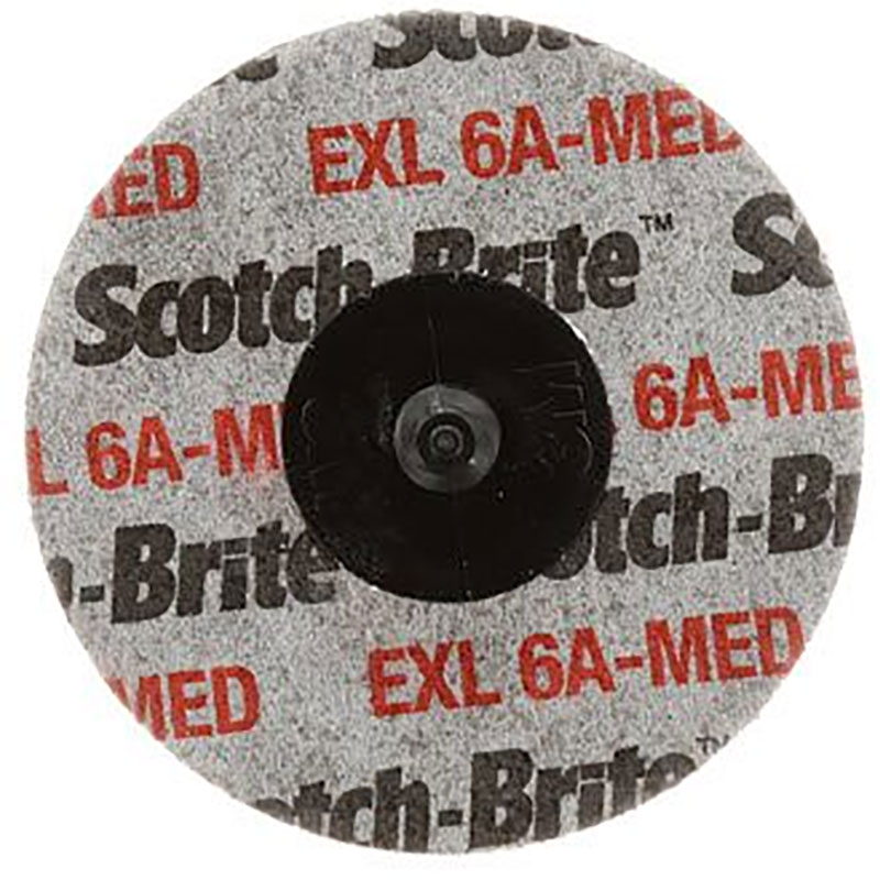 The Scotch-Brite™ Roloc™ EXL Unitized Wheel is extremely tough, delivering aggressive cutting power for effective deburring of edges and corners without damaging the part. The lower densities of this wheel are soft and conformable and work well for finishing contoured surfaces. This disc also features the 3M™ Roloc™ Quick Release System for quick and easy disc changes. Roloc discs allow use of both the edge and surface of the wheel without interruption of mounting hardware. 3M™ Roloc™ Quick Change Discs are smaller discs that are designed to be easily and quickly attach onto a Roloc™ Disc Pad (sold separately) so that you can conveniently change discs to accommodate different tasks or multi-step finishing processes.