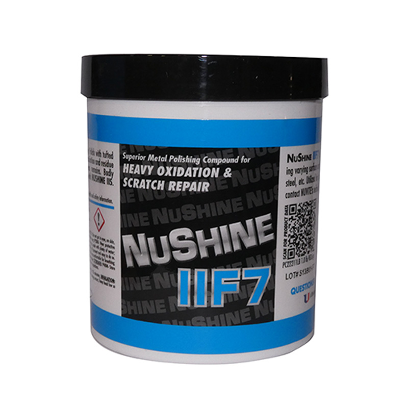 | Nuvite engineers have formulated a system of polishes to meet the needs for almost any metal and paint polishing project. New metal to antique, the formulations in the NuShine II Polishing System will give superior definition, highlights, imagery, clarity, and will retain the finish longer than normal polishes. Nuvite’s NuShine II graded polishes use high technology materials with programmed abrasive characteristics and are blended with superior carriers to offer the ability to produce cutting action when needed, yet offer micron-level finishing in the finer grades that produces highest reflectance and image excellence. |
