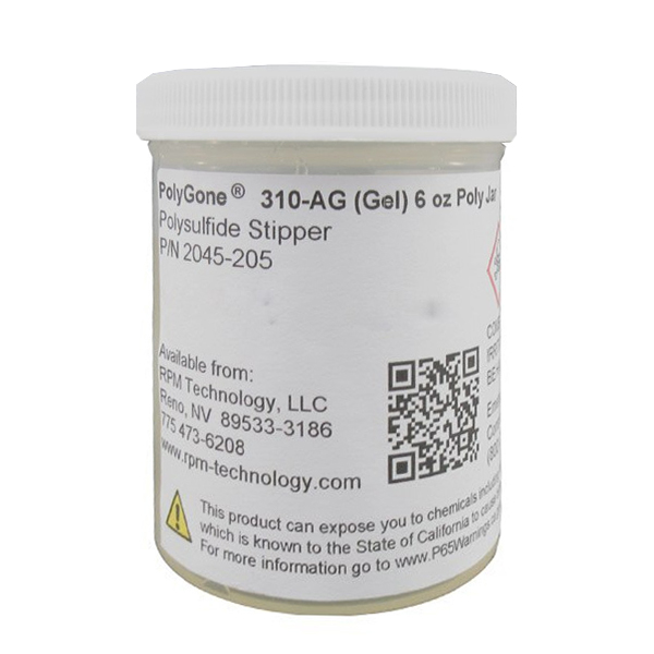 PolyGone™ stripping agents are unique formulations that remove polysulfide (PRC) and silicone RTV sealants from metal, ceramic, and some plastic substrates. The top polysulfide producers include PRC DeSoto (now PPG), AC Tech, and Flamemaster. The top silicone producers are GE, Dow, and Wacker. Both polysulfide (polysulphide) and silicone RTV are difficult to remove completely since they actually bond into surface/substrate.