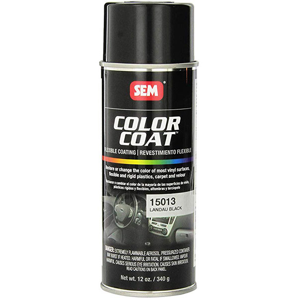 | SEM COLOR COAT is formulated to match, restore or change color on most vinyl surfaces, flexible and rigid plastics, carpet and velour. Fade resistant and flexible, COLOR COAT is not a dye, but a permanent paint coating. |