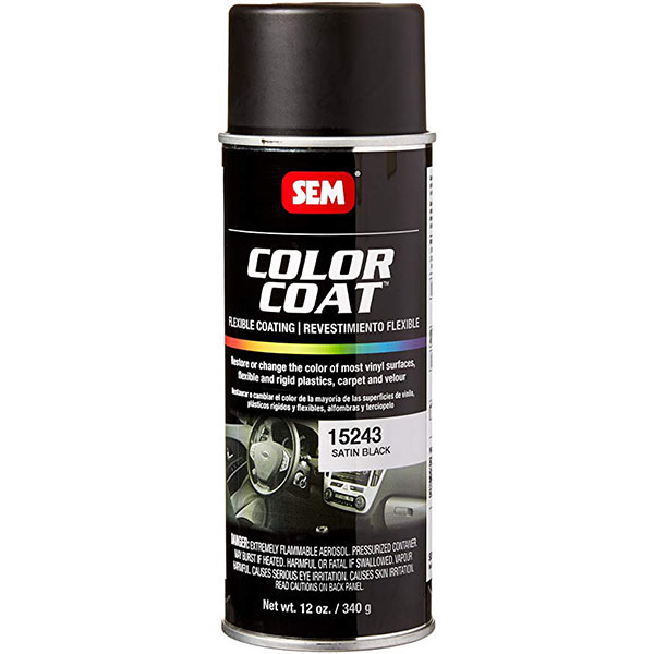 | SEM COLOR COAT is formulated to match, restore or change color on most vinyl surfaces, flexible and rigid plastics, carpet and velour. Fade resistant and flexible, COLOR COAT is not a dye, but a permanent paint coating. |