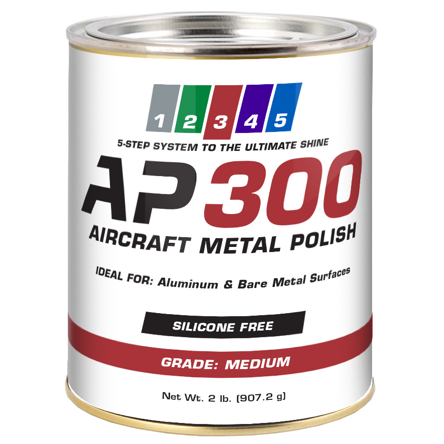 Directions: Some settling may occur during shipping, stir before using. For best results, apply 1 teaspoon of AP300 Aircraft Metal Polish to Aluminum (Clad or Mil grade) and bare metal surfaces with a clean, dry microfiber cloth – do not use water. When using an electric buffer, use a clean, soft, free of dust buffing pad. Work one 4-5 sq. ft. section at a time. Apply as needed. For maximum shine, buff off immediately while AP300 Aircraft Metal Polish is still moist – do not let dry. Minimum slinging formula. Product sold by weight not volume. Follow up with AP400 Aircraft Metal Polish.