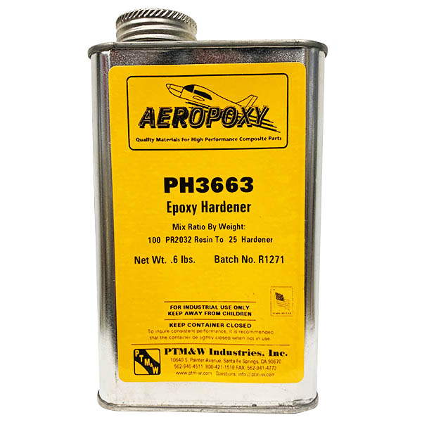 Hardener PH3663 is the standard production hardener for fabricating composite parts. PH3663 has a 90 minute working time which provides more time for construction. This hardener provides similar mixed viscosities, so handling will be basically the same, except for the different working times. This product can be considered low toxicity material that has minimum hazard potential when used properly and in a clean and responsible manner. Hardener PH3663 does not contain methylene dianiline (MDA), or other potentially harmful aniline derivatives. Neither the resin nor the hardeners will crystallize in normal shipping and storage conditions, including refrigerated storage. All components have excellent moisture resistance, for minimal problems in high humidity environments. |