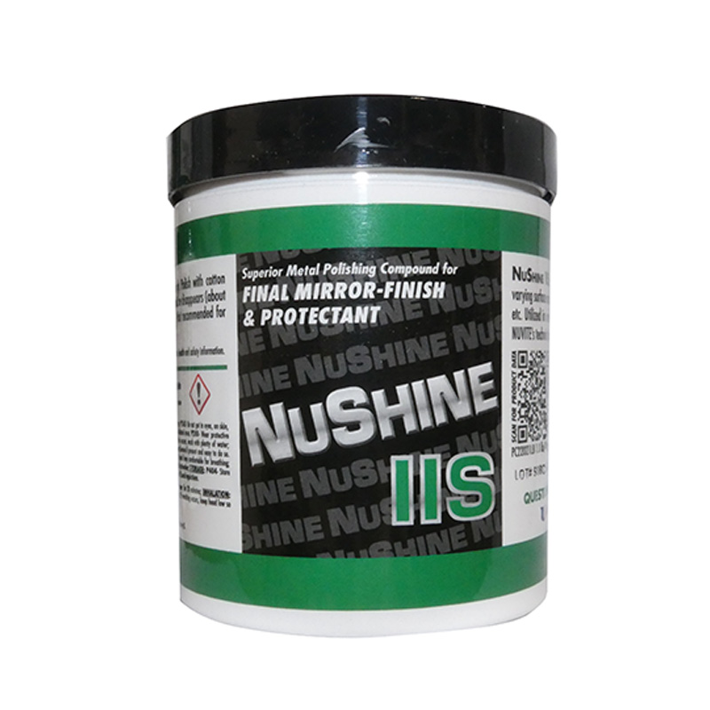 | Nuvite engineers have formulated a system of polishes to meet the needs for almost any metal and paint polishing project. New metal to antique, the formulations in the NuShine II Polishing System will give superior definition, highlights, imagery, clarity, and will retain the finish longer than normal polishes. Nuvite’s NuShine II graded polishes use high technology materials with programmed abrasive characteristics and are blended with superior carriers to offer the ability to produce cutting action when needed, yet offer micron-level finishing in the finer grades that produces highest reflectance and image excellence. |