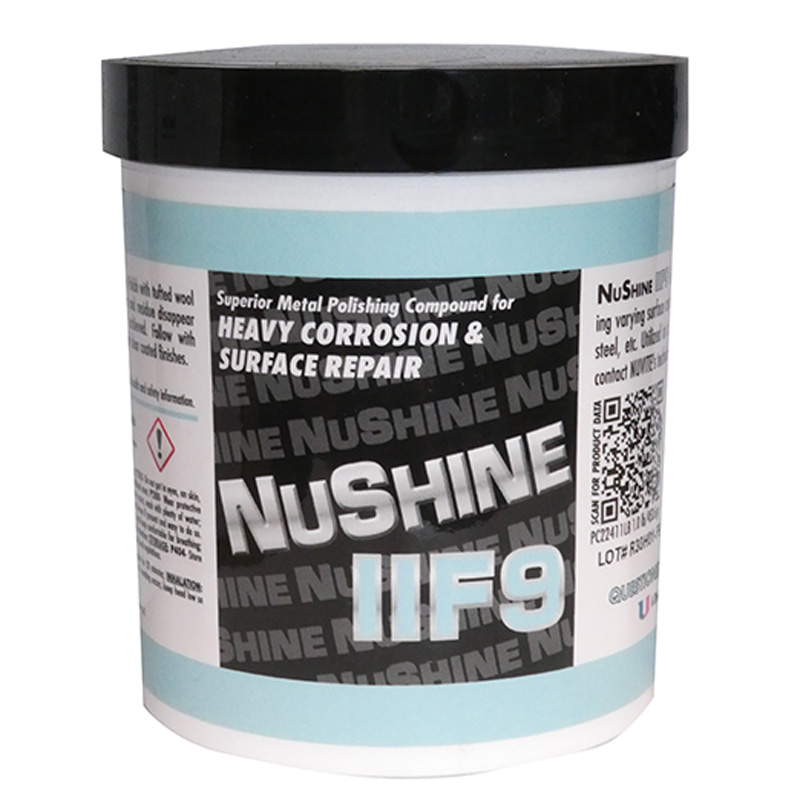 | Nuvite engineers have formulated a system of polishes to meet the needs for almost any metal and paint polishing project. New metal to antique, the formulations in the NuShine II Polishing System will give superior definition, highlights, imagery, clarity, and will retain the finish longer than normal polishes. Nuvite’s NuShine II graded polishes use high technology materials with programmed abrasive characteristics and are blended with superior carriers to offer the ability to produce cutting action when needed, yet offer micron-level finishing in the finer grades that produces highest reflectance and image excellence. |