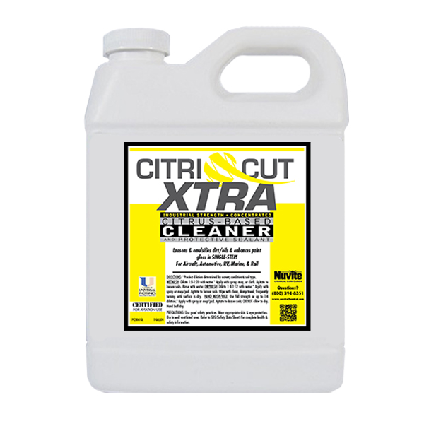 | Industrial strength, concentrated citrus-based cleaner and sealant. Loosens and emulsifies dirt/oils and enhances paint gloss in single step. Can be used as a dry wash, hand wax, sealant and cleaner for Aircraft, Automotive, RV, Marine and Rail. |