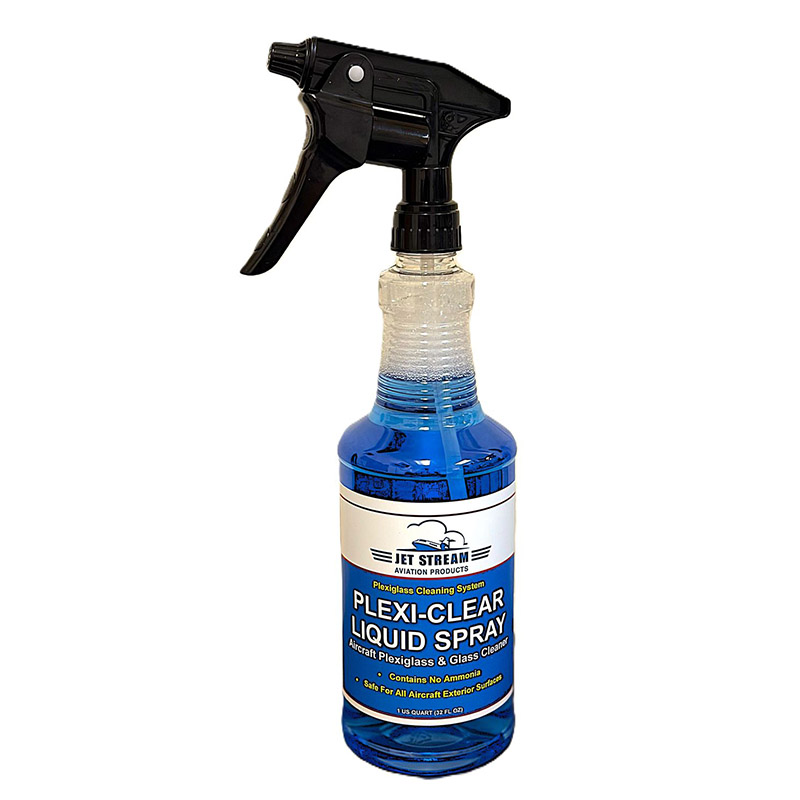 Plexi-Clear Liquid Spray is excellent on aircraft Plexiglass, glass, countertops, hard surfaces & more. Product is great to use as an aircraft dry wash. Safe to use on all polished brightwork and treated de-ice boots. |