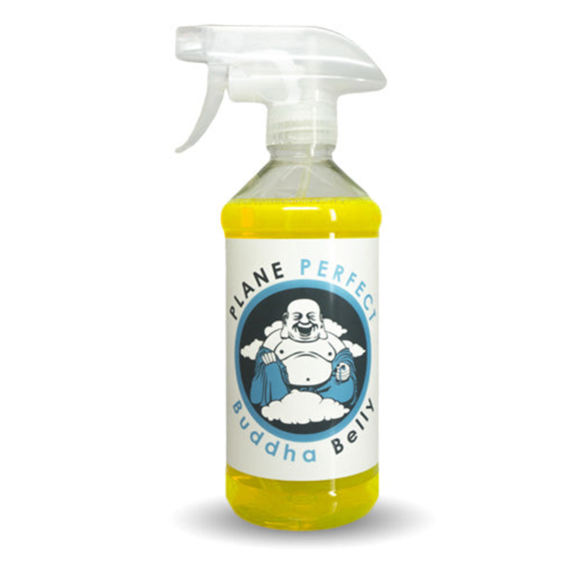 Inspired by the exhaust-wheezing, oil-spitting radial engine of one of the founders, Buddha Belly was developed to remove the oil, dirt, grime, bugs and exhaust and other stains that plague all aircraft, boat and car owners. Got some junk on those rivet heads? Exhaust or turbine soot staining? Fuel stains? Buddha to the rescue! The problem faced was developing a formulation that would remove the oil and grime, but still be safe to use. Buddha Belly uses an all-natural citrus-based formula to clean surfaces free of contaminants. Safe to use on the exterior and interior of any vehicle, Buddha Belly is your go-to product for difficult to clean surfaces. Cleaning professionals ALWAYS recommend following Buddha with a surface protectant like EcoClean, Wing Wipe, 1 or Clear Coat to lay down protection in its path. Used as a spray on/wipe off product with the Plane Perfect system, Buddha will not strip the protection of Wing, 1 or Clear Coat on your surface. Buddha Belly consists of a citrus cutting agent and two surfactants that is pH balanced to safely lift oil, grease and grime. Buddha contains no petroleum distillates, but that doesn't mean it isn't tough! Always test on a small surface area first and never leave to dry. You can even dilute Buddha to your liking if it's too tough! Works great on engine bays as well. |