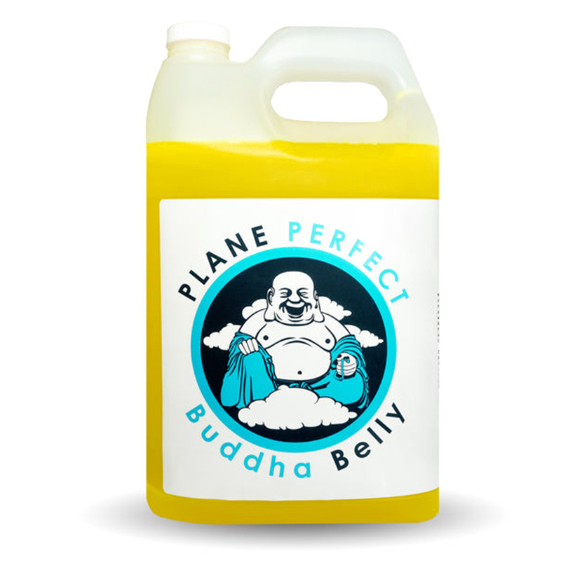 Inspired by the exhaust-wheezing, oil-spitting radial engine of one of the founders, Buddha Belly was developed to remove the oil, dirt, grime, bugs and exhaust and other stains that plague all aircraft, boat and car owners. Got some junk on those rivet heads? Exhaust or turbine soot staining? Fuel stains? Buddha to the rescue! The problem faced was developing a formulation that would remove the oil and grime, but still be safe to use. Buddha Belly uses an all-natural citrus-based formula to clean surfaces free of contaminants. Safe to use on the exterior and interior of any vehicle, Buddha Belly is your go-to product for difficult to clean surfaces. Cleaning professionals ALWAYS recommend following Buddha with a surface protectant like EcoClean, Wing Wipe, 1 or Clear Coat to lay down protection in its path. Used as a spray on/wipe off product with the Plane Perfect system, Buddha will not strip the protection of Wing, 1 or Clear Coat on your surface. Buddha Belly consists of a citrus cutting agent and two surfactants that is pH balanced to safely lift oil, grease and grime. Buddha contains no petroleum distillates, but that doesn't mean it isn't tough! Always test on a small surface area first and never leave to dry. You can even dilute Buddha to your liking if it's too tough! Works great on engine bays as well. |
