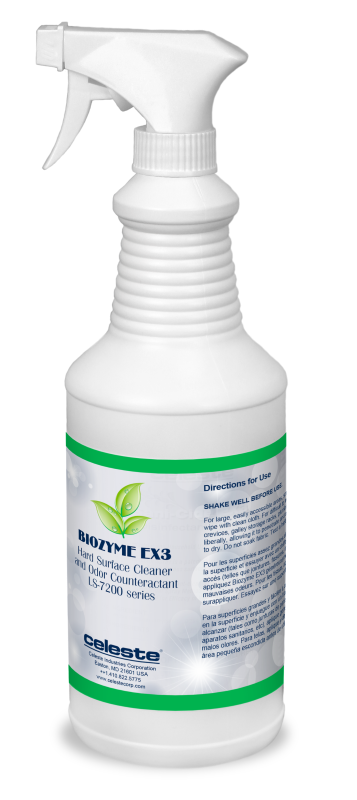 | A multi-purpose biochemical cleaner, deodorizer and fabric freshener uniquely formulated to attack tough malodor issues using a 3-pronged approach: malodor neutralization, re-odorization, long term odor control. Incorporate Biozyme EX3 into a Complete Hygiene Program together with Sani-Cide EX3 and NG Interior Cleaner Complete. |