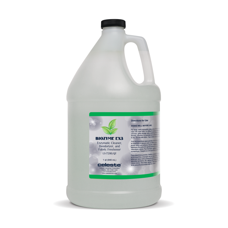 | A multi-purpose biochemical cleaner, deodorizer and fabric freshener uniquely formulated to attack tough malodor issues using a 3-pronged approach: malodor neutralization, re-odorization, long term odor control. Incorporate Biozyme EX3 into a Complete Hygiene Program together with Sani-Cide EX3 and NG Interior Cleaner Complete. |