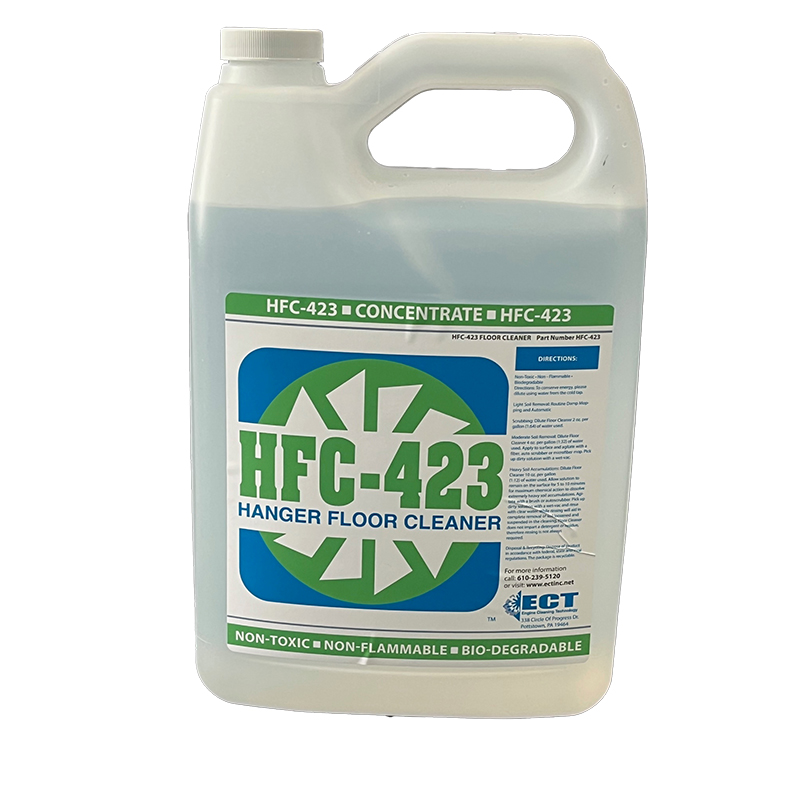 Available for Use in All States Designed for use with all Hangar Floor surfaces, the ECT-Hangar Floor Cleaner is a highly concentrated low foam floor cleaner, effective to remove difficult soils associated with aircraft hangars. Can also be used for all other routine cleaning. ECT-Hangar Floor Cleaner is a cleaner-concentrate and can be diluted 1 oz per gallon of water(1:128) for everyday cleaning. Use 4oz per gallon of water for heavily soiled areas(1:32) or neat for spot treating. ECT-Hangar Floor Cleaner can be used with all conventional cleaning methods, including, automatic floor scrubbing, mop & bucket and pressure washing. |