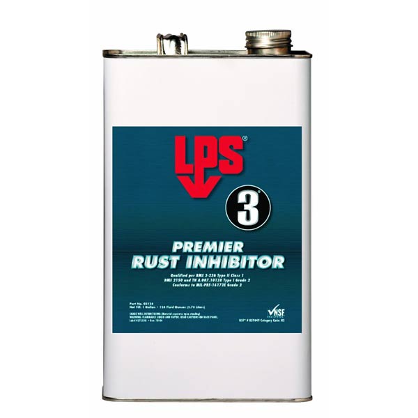 | LPS 3 Premier Rust Inhibitor is a specially formulated long-term corrosion inhibitor protecting metal parts in inside storage for up to two years. When applied it forms a soft, transparent, waxy film sealing out moisture, air, acid, alkali fumes, and other corrosive elements. |