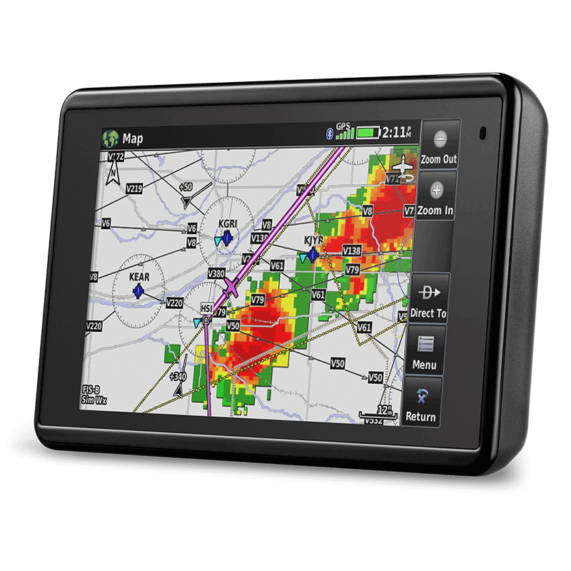 Affordable feature-rich navigation, stunning display and streamlined database updating This compact 5-inch capacitive touchscreen boasts a bright, sunlight readable display complete with rich, interactive maps and a built-in GPS/GLONASS receiver that can be viewed in portrait or landscape modes for optimum customization. The aera 660 encompasses many of the features of the renowned aera® and GPSMAP® aviation portable series, adding Connext® wireless capabilities, Garmin WireAware™ wire-strike avoidance technology and more. Cost-effective database options along with built-in Wi-Fi® database updating capabilities allow customers to more easily access the most up-to-date data, including daily U.S. fuel prices. Bluetooth® supports the display of ADS-B “In” traffic and weather1 from a variety of sources, including the GDL® 39/GDL 39 3D, Flight Stream and the GTX 345 ADS-B transponder.![]() Dedicated Compact Portable Navigator The aera 660 features a 5-inch capacitive touchscreen display that is optimized for cockpits and various types of flying. An elegant yet rugged design allows the aera 660 to withstand harsh environments, meeting stringent temperature tests and helicopter vibration standards. The Garmin signature direct-to feature is always available so it’s easy to command navigation functions or find nearest airports from any page. A mini-USB connector, microSD™ card slot and removable battery accompany a dedicated power button along the bezel of the aera. Depending on settings and external connections, pilots will receive up to 4 hours of battery life on a single charge. An intuitive user interface resembles that of the popular GTN™ 650/750 touchscreen series, aera 795/796 series and the Garmin Pilot™ app, so pilots can easily transition between the aera 660 and other Garmin products in the cockpit. 3D Vision The 3D Vision page within the aera 660 leverages a worldwide terrain database to create a rich, 3D representation of rising terrain near the aircraft, while overlaying GPS-derived airspeed, altitude and vertical speed alongside flight plan information. 3D Vision also displays lateral and vertical (VNAV) deviation bars and includes a 360-degree HSI, which displays course deviation, track, bearing and more. Bearing pointers can be manually configured to identify the nearest airport, complete with distance information. When connected to the GTX 345, GDL 39 3D or Flight Stream, the 3D Vision presentation is further enhanced with the display of pitch, roll and slip-skid information. A pilot-selectable presentation optionally displays flight instruments in round gauges or tapes overlaid on the 3D topographic landscape. Connext Wireless Connectrivity Wireless connectivity options set the aera 660 even further apart from other portables on the market. Wireless database updating capabilities add to the unique feature set of the aera 660. When connected to Wi-Fi, pilots can easily download and update aviation databases without the need to physically connect the aera to a computer. Additionally, the aera 660 supports connectivity with the Garmin VIRB® XE HD action camera, so pilots can control recording and take photos. When paired with the GTX 345, Flight Stream or the GDL 39/GDL 39 3D, ADS-B traffic and weather1 is wirelessly transferred and displayed on the aera 660. ADS-B traffic information may be viewed on the moving map, IFR/VFR charts and dedicated traffic pages, which also leverages patent-pending features such as TargetTrend™ and TerminalTraffic™. Traffic trajectories and potential conflicts are easier to identify with TargetTrend, which incorporates relative motion technology to help pilots visualize the future position of nearby traffic targets relative to the aircraft. The traffic picture is further enhanced during taxi, takeoff and landing with TerminalTraffic, which detects and displays other aircraft or ground vehicles on runways or taxiways that are also broadcasting ADS-B position information. SafeTaxi® geo-referenced airport diagrams also aid in situational awareness by identifying runways, taxiways, FBO’s, hangars and more relative to the aircraft’s position on the airport surface. Subscription-free Flight Information Service-Broadcast (FIS-B) weather1 products may simultaneously be overlaid on the map page and dedicated weather pages for easy interpretation. Weather-related decision-making is easier with the aera 660, which helps pilots interpret datalink NEXRAD radar more easily by animating this imagery. Additionally, multiple weather products can be overlaid on a single weather page for better analysis.Fuel Prices, Global Charting Options and More Comprehensive chart options provide pilots with an easy path to a paperless cockpit in a compact device, which may be qualified for use as either a Class I or Class II Electronic Flight Bag (EFB). Geo-referenced IFR enroute, VFR sectional charts and Garmin FliteCharts® terminal procedures are available as part of the expansive database offerings associated with the aera 660. Using FliteCharts, pilots can easily view departure procedures (DPs), standard terminal arrival routes (STARs) and geo-referenced approach charts. Additionally, Garmin ChartView™ enables the display of Jeppesen charts with an optional subscription from Jeppesen. U.S. fuel price data is easily accessible on the map or within the airport directory database, so it’s easy to identify the lowest price of 100 LL and Jet A in the area. Similar to features found within other Garmin products, patented Smart Airspace™ is included in the aera 660 feature set. Smart Airspace highlights the airspace nearest the aircraft’s current altitude and de-emphasizes non-pertinent airspace so pilots can quickly identify their location relative to the airspace around them. Using the optional global navigation database and many regional charting options, the aera 660 provides worldwide versatility. The aera 660 is available in 4 regional ver
