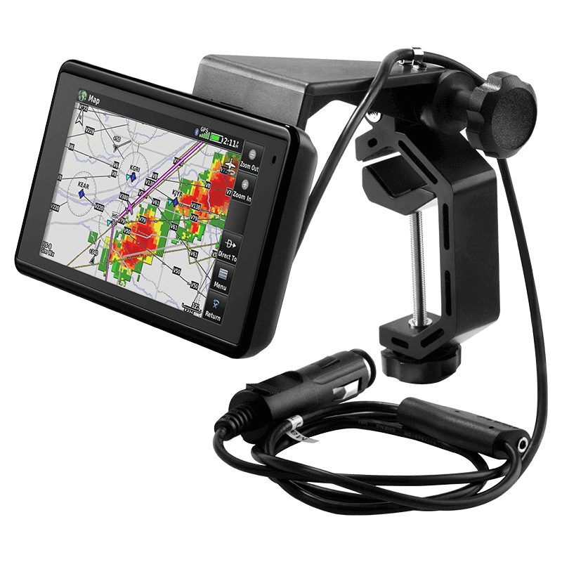 The aera 660 includes a yoke mount and cigarette lighter adapter as a standard accessory (pictured). Pilots can also connect an optional bare wire cable to the aircraft instrument panel and expand the utility of the aera 660 by utilizing power, audio and dual RS-232 connections. When paired with a navigator such as the GTN 650/750 touchscreen series or the GNS 430W/530W, the aera can receive flight plan data entered into the navigator over a serial port and remain synchronized throughout the flight. When connected to a NAV/COM such as the GTR 225, GNC 255, GTR 200, SL 30 or SL 40, frequencies and airport identifiers can also be transferred from the aera to the corresponding NAV/COM. Additionally, ADS-B traffic and weather1 can be transferred via the wired connection to the aera 660 when linked to the GTX 345, GDL 39 or GDL 39 3D. Low-Cost Database Options The Garmin Navigation Database available for North America offers a cost-effective path to incorporate the latest database information into the aera 660. Navigation data includes the option to load and activate instrument approach procedures, load flight plan data and more. The Garmin Navigation Database has an option for a single update. There are also a variety of cost-effective annual bundles available, such as the U.S bundle, which includes the Garmin Navigation Database, FliteCharts®, IFR/VFR Charts, Terrain, Obstacles, SafeTaxi® and the AOPA Airport Directory with fuel prices. For worldwide coverage, Jeppesen NavData is also available for purchase. Please check flyGarmin.com for current pricing and ordering. Once purchased, these databases can be conveniently downloaded and updated on the aera 660 via Wi-Fi. With its long list of features, the aera 660 combines many of the capabilities of panel-mounted avionics with a value-packed, purpose-built package. It’s a dedicated aviation portable that’s ready to fly, right out of the box. |