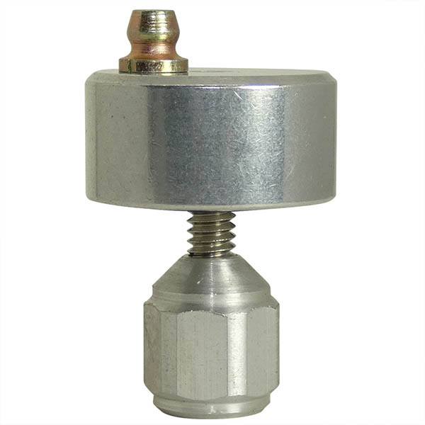 The ACS bearing regreasers restore bearings, rod ends and pulleys to like-new condition. O-ring in base of regreaser provides positive seal when bearing is secured by the threaded center post. Grease, entering under pressure at the grease fitting, is forced to flow through the bearing, flushing out the old grease and dirt, and recharging the bearing with fresh grease. Available in five sizes.