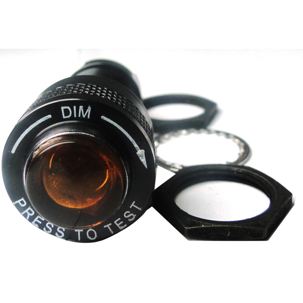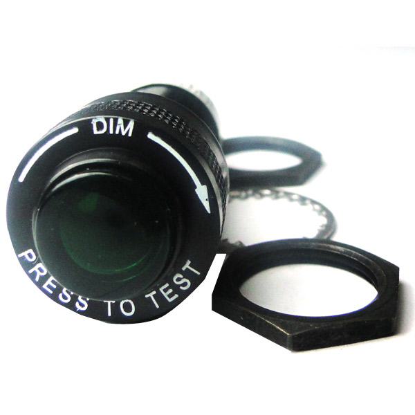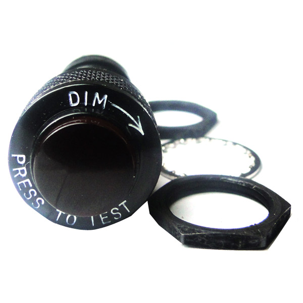 | Miniature press-to-test indicator with built-in bulb testing device. Adjustable dimmer. Uses #330 (12V) or #327 (24V) bulb. Bulbs NOT included, order separately. Part numbers for replacement bulbs are 11-04016 (GE-330) and 11-04015 (GE-327). See "Accessories" tab to purchase. |
