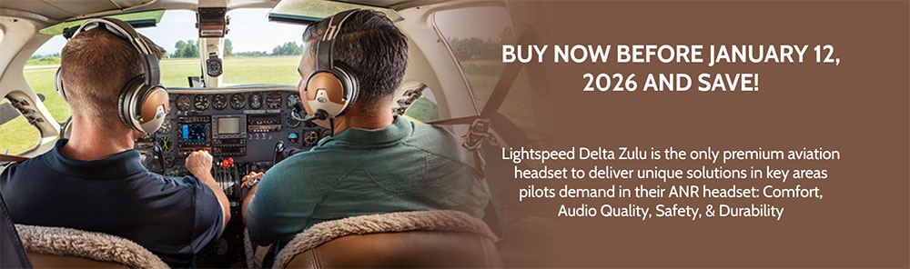 pilots and passengers. SAFETY Lightspeed’s designers and engineers collaborated with a team of highly qualified flight and safety experts to develop a revolutionary digital platform and groundbreaking new technologies to make flying safer. Kanari™ smart alert technology built right into the headset provides protection by measuring cabin carbon monoxide levels, helping to keep you and your passengers alert and safe with audible warnings. The free Lightspeed App allows you to also check the CO sensor data visually during flight and review your full history later. The Delta Zulu also introduces a built-in audio equalization system called HearingEQity™ that ensures crystal clear flight communication. Through an automated 12-frequency hearing test that can be taken through the Lightspeed App, HearingEQity sets the hearing level in each ear of your headset to create your individual hearing profile to compensate for any hearing variations between ears. CONTROL The Lightspeed App also allows you to record radio conversations, playback transmissions, draw diagrams, and archive flight recordings for post-flight briefing and training. Delta Zulu is also the first headset to adopt the UAC plug, allowing you to connect to other devices directly from the headset for charging, data communications, and auxiliary audio. COMFORT The legendary Zulu comfort and durability continues in the Delta Zulu. Performance ear seals, sturdy cables built around a Kevlar core, full Bluetooth integration, and an industry-best 7-year warranty are still standard in the newest Lightspeed model. |
