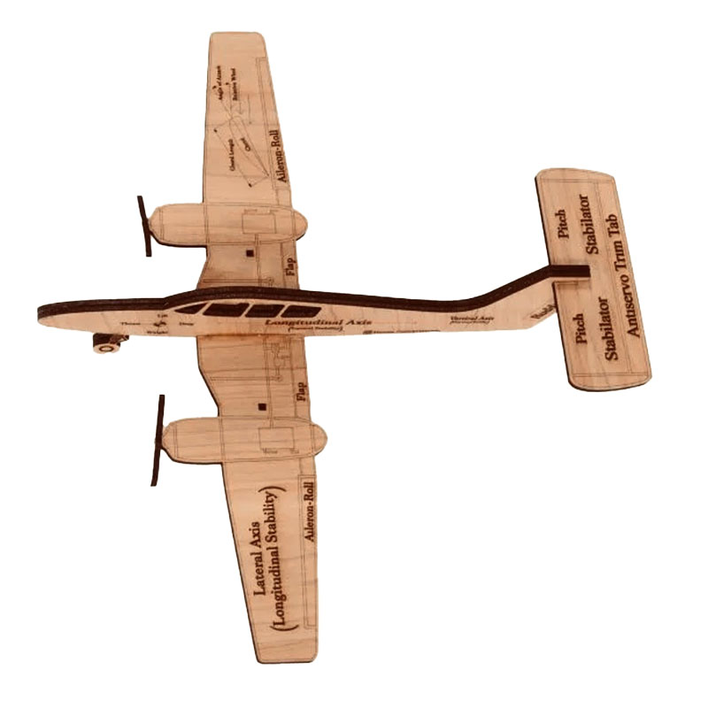 | Hand crafted, laser engraved wooden training aids that bring a fun and interactive way to learn the complexity of the fundamentals of an airplane. The planes are labeled with comprehensive diagrams to help students progress through their journey of flying. |