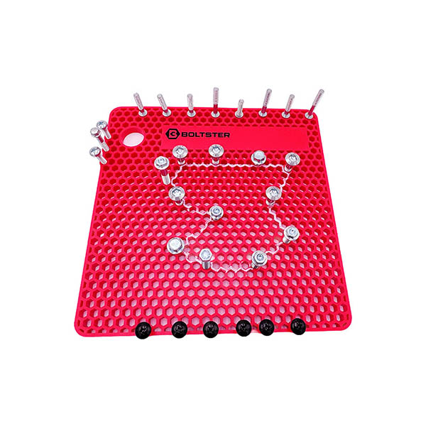 • The Boltster utilizes 765 holes. This means you will never lose orientation of your bolts again! You can literally organize them into any configuration of your choosing.