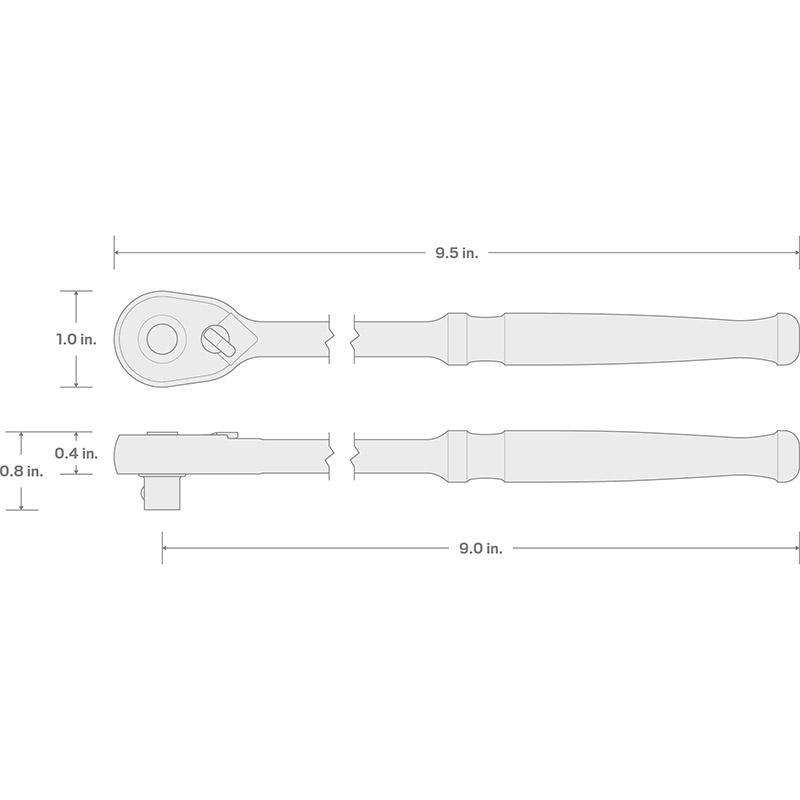 We name our ratchets and breaker bars according to their effective working length, which is measured from the center of the drive tang to the end of the handle.