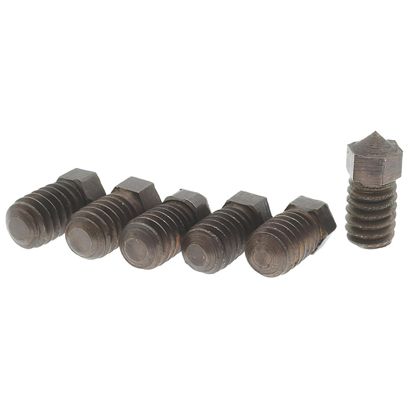 Ideal for use in layout, tool and die work; also can be used for locating fixtures, air cylinders, chucks, and general repairs. Aids in locating the die in proper relation to the punch on commercial die sets. Black oxide surface treatment. Hardness 48~52HRC. Complete set consists of four or six hardened hardened screws nested in a combined holder and wrench. |