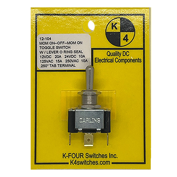 SINGLE POLE--12 VOLT 21 AMPS--HEAVY DUTY HAS LEVER O' RING SEAL--SILVER CONTACTS .687 INCH LEVER LENGTH--.500 INCH MOUNTING HOLE .250 INCH TAB TERMINALS DOUBLE POLE--12 VOLT 21 AMPS--HEAVY DUTY HAS LEVER O' RING SEAL--SILVER CONTACTS .687 INCH LEVER LENGTH--.500 INCH MOUNTING HOLE .250 INCH TAB TERMINALS Note: ( ) Refers to Momentary |