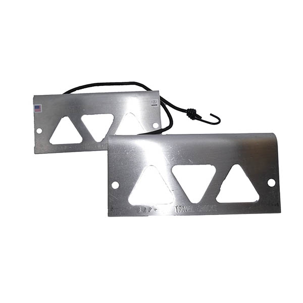 The small aluminum travel chocks weigh approximately 0.37 lbs.