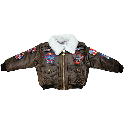 | These are a Flightline original. They're a reproduction of a classic bomber, complete with simulated fleece collar. They are sturdily made with many special touches that make it unique, such as an airplane zipper pull, authentic aviation patches, knit cuffs & waistband, epaulets and a colorful graphic map liner. |