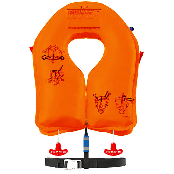 This is part of regulation under TSO C13f 4.1.15 Color. The color of the life preserver must be an approved international orange-yellow or similar high visibility color. The color of the flight crew life preservers may be an approved red-orange or similar high visibility contrasting color.