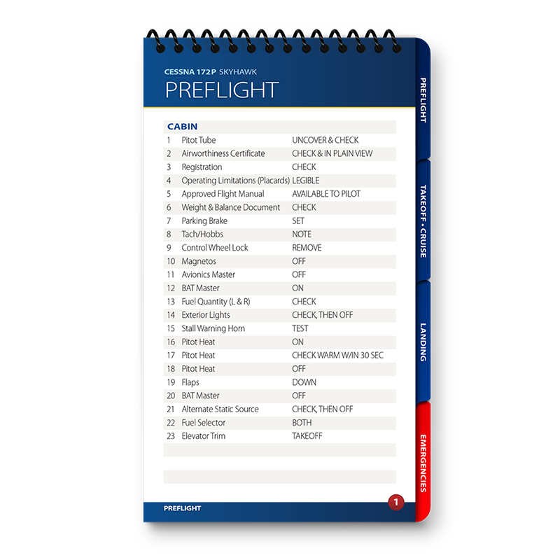 Qref BooksTopics Covered: Preflight, Takeoff/Cruise, Landing, Comprehensive Abnormals and Emergencies, V-speed list, cruise performance chart Get the most accurate, reliable aircraft checklist on the market with a Qref checklist. The procedures cover every aspect of flight, from preflight through takeoff, cruise, landing, and a comprehensive emergencies/abnormals section. Emergencies are arranged by system, meaning no more digging through pages to find the right section. Qref’s trademark is creating checklists that are easy for pilots to use. A major difference in aircraft checklists between Qref and others is the level of experience and expertise that go into every procedure. The Qref team of Master CFIs have over four decades of combined active flight instruction and flying experience at all levels of industry, with instruction and flight time in this aircraft. Further, they have taken advantage of the past 20 years of checklist design research. Qref’s team incorporates industry-best practices into these checklists and forthcoming publications. They not only create checklists, they use them in daily instruction and flying. Qref checklist design features a larger, more readable font, comprehensive procedures sectioned into tabs loaded with useful reference and conversions, and non-glare laminated pages. A complete table of contents makes finding the exact procedure quick. Find out for yourself why Qref aircraft checklists are fast becoming the Gold Standard in aviation. Qref CardsTopics Covered: Preflight, Takeoff/Cruise, Landing, Abnormals and Emergencies, V-speed list 2-card set: one for standard procedures, one for abnormals and emergencies. Q'Cards are designed for pilots who are already familiar with the aircraft but need an everyday checklist to keep relevant procedures at their fingertips. 5" x 9" (12.7 cm x 22.8 cm), the prefect size to fit on a yoke mount or kneeboard. Indestructible proprietary 10-mil laminate with non-glare, UV protective treatment means these checklists will withstand years of use. No other checklist has this! A major difference in aircraft checklists between Qref and others is the level of experience and expertise that go into every procedure. The Qref team of Master CFIs have over four decades of combined active flight instruction and flying experience at all levels of industry, with instruction and flight time in this aircraft. Further, they have taken advantage of the past 20 years of checklist design research. Qref’s team incorporates industry-best practices into these checklists and forthcoming publications. They not only create checklists, they use them in daily instruction and flying. Find out for yourself why Qref aircraft checklists are fast becoming the Gold Standard in aviation. |