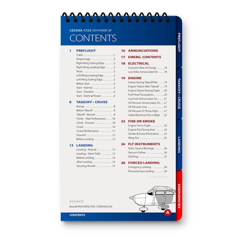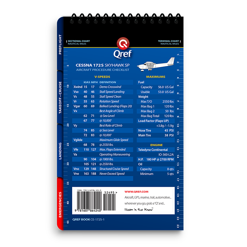 Qref BooksTopics Covered: Preflight, Takeoff/Cruise, Landing, Comprehensive Abnormals and Emergencies, V-speed list, cruise performance chart Get the most accurate, reliable aircraft checklist on the market with a Qref checklist. The procedures cover every aspect of flight, from preflight through takeoff, cruise, landing, and a comprehensive emergencies/abnormals section. Emergencies are arranged by system, meaning no more digging through pages to find the right section. Qref’s trademark is creating checklists that are easy for pilots to use. A major difference in aircraft checklists between Qref and others is the level of experience and expertise that go into every procedure. The Qref team of Master CFIs have over four decades of combined active flight instruction and flying experience at all levels of industry, with instruction and flight time in this aircraft. Further, they have taken advantage of the past 20 years of checklist design research. Qref’s team incorporates industry-best practices into these checklists and forthcoming publications. They not only create checklists, they use them in daily instruction and flying. Qref checklist design features a larger, more readable font, comprehensive procedures sectioned into tabs loaded with useful reference and conversions, and non-glare laminated pages. A complete table of contents makes finding the exact procedure quick. Find out for yourself why Qref aircraft checklists are fast becoming the Gold Standard in aviation. Qref CardsTopics Covered: Preflight, Takeoff/Cruise, Landing, Abnormals and Emergencies, V-speed list 2-card set: one for standard procedures, one for abnormals and emergencies. Q'Cards are designed for pilots who are already familiar with the aircraft but need an everyday checklist to keep relevant procedures at their fingertips. 5" x 9" (12.7 cm x 22.8 cm), the prefect size to fit on a yoke mount or kneeboard. Indestructible proprietary 10-mil laminate with non-glare, UV protective treatment means these checklists will withstand years of use. No other checklist has this! A major difference in aircraft checklists between Qref and others is the level of experience and expertise that go into every procedure. The Qref team of Master CFIs have over four decades of combined active flight instruction and flying experience at all levels of industry, with instruction and flight time in this aircraft. Further, they have taken advantage of the past 20 years of checklist design research. Qref’s team incorporates industry-best practices into these checklists and forthcoming publications. They not only create checklists, they use them in daily instruction and flying. Find out for yourself why Qref aircraft checklists are fast becoming the Gold Standard in aviation. |