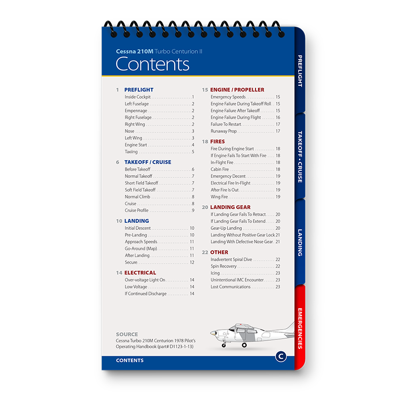 Qref BooksTopics Covered: Preflight, Takeoff/Cruise, Landing, Comprehensive Abnormals and Emergencies, V-speed list, cruise performance chart Get the most accurate, reliable aircraft checklist on the market with a Qref checklist. The procedures cover every aspect of flight, from preflight through takeoff, cruise, landing, and a comprehensive emergencies/abnormals section. Emergencies are arranged by system, meaning no more digging through pages to find the right section. Qref’s trademark is creating checklists that are easy for pilots to use. A major difference in aircraft checklists between Qref and others is the level of experience and expertise that go into every procedure. The Qref team of Master CFIs have over four decades of combined active flight instruction and flying experience at all levels of industry, with instruction and flight time in this aircraft. Further, they have taken advantage of the past 20 years of checklist design research. Qref’s team incorporates industry-best practices into these checklists and forthcoming publications. They not only create checklists, they use them in daily instruction and flying. Qref checklist design features a larger, more readable font, comprehensive procedures sectioned into tabs loaded with useful reference and conversions, and non-glare laminated pages. A complete table of contents makes finding the exact procedure quick. Find out for yourself why Qref aircraft checklists are fast becoming the Gold Standard in aviation. Qref CardsTopics Covered: Preflight, Takeoff/Cruise, Landing, Abnormals and Emergencies, V-speed list 2-card set: one for standard procedures, one for abnormals and emergencies. Q'Cards are designed for pilots who are already familiar with the aircraft but need an everyday checklist to keep relevant procedures at their fingertips. 5" x 9" (12.7 cm x 22.8 cm), the prefect size to fit on a yoke mount or kneeboard. Indestructible proprietary 10-mil laminate with non-glare, UV protective treatment means these checklists will withstand years of use. No other checklist has this! A major difference in aircraft checklists between Qref and others is the level of experience and expertise that go into every procedure. The Qref team of Master CFIs have over four decades of combined active flight instruction and flying experience at all levels of industry, with instruction and flight time in this aircraft. Further, they have taken advantage of the past 20 years of checklist design research. Qref’s team incorporates industry-best practices into these checklists and forthcoming publications. They not only create checklists, they use them in daily instruction and flying. Find out for yourself why Qref aircraft checklists are fast becoming the Gold Standard in aviation. |