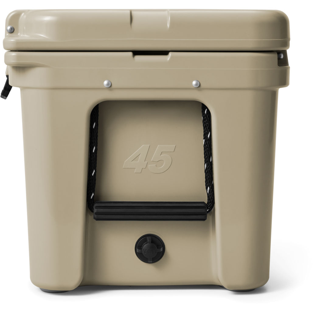 • The Tundra 45 is UV-resistant and damn-near indestructible. The durable, marine-grade polyester rope handles with textured grips let you easily haul your premium cooler to the campsite and out on quick hunting excursions. It’s also great for a day on the lake, due to its molded-in tie-down slots and non-slip feet. No matter your passion, the Tundra 45 is ready to go along for the ride.