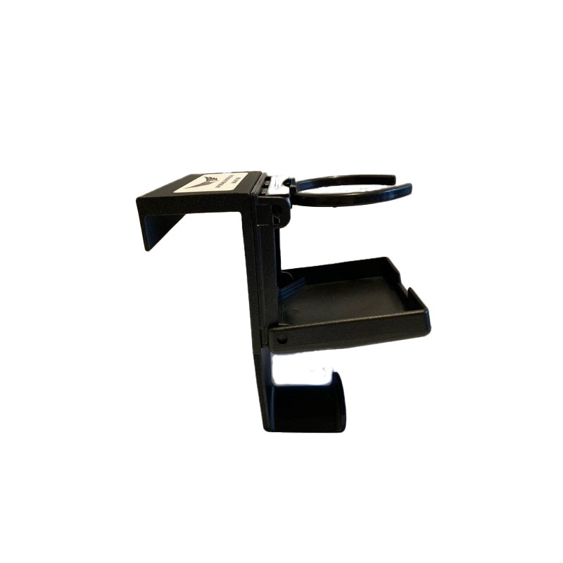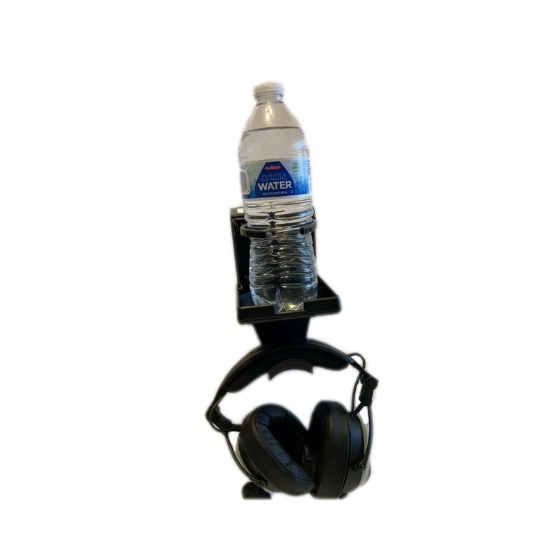 The cup holder with the headset extension is the solution for hanging your headset. It does not get in the way of the control wheel!