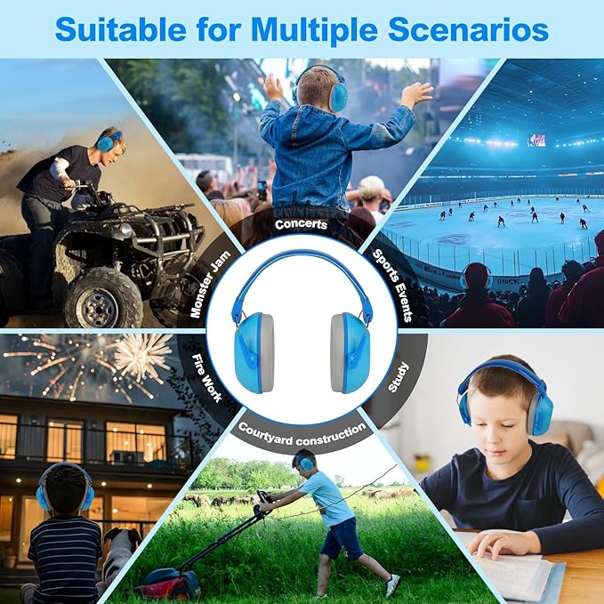 Excellent Noise Canceling Perfromance: Kids Noise canceling headphones have an ultra-high rated SNR 28dB.The kids ear muffs which are designed for children with autism and hearing sensitivity, reduce noise to a safe level. The child ear protectors provide the most reliable safety by perfectly blocking out noise from monster truck shows, concerts, fireworks, traveling, sporting events, yard work, and more.