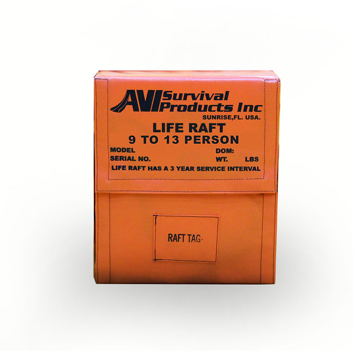 AVI Survival Products 9 Person Life Raft are the lightest and smallest rafts in the Survival Products line up. The NON-TSO Life Rafts are a great choice for those who fall under the Part 91 Category and for those pleasure boaters wishing to feel at ease if an emergency arises at sea. The 9 Person model has a single tube inflatable design, constructed with the latest Urethane coated Nylon Fabric, with a single tube design that are attached using hot air welding. Welding the fabric together tightly seals the seams together giving a seamless finish. Each raft includes a stabilizing Water Ballast system, a hand pump, bailing bucket, a sea anchor, secured life-lines on the exterior perimeter of the raft for use of survivors in the water, and an inflation/retaining line that is attached to a high strength patch on the raft to prevent drifting. The CO 2 Inflation System is packed in an Aluminum cylinder to reduce corrosion while packed and in use. The Soft-Pack Orange Valise is made of heavy-duty polyester fabric with secured Velcro closures for a tightly packed raft. These rafts are engineered to reduce overall weight and deliver a compact design for easy transport and stowage for any aircraft compartment. AVI life rafts come with a 5-year warranty on parts and labor, built to last a lifetime with proper care. |