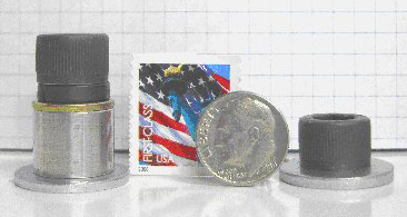 | Shown here with a postage stamp and dime. On the right, the most common Vans RVa attach point providing 3/8” engagement. On the left, Bogert’s tow pin kit with over 1” engagement. Near flush with wheelpant |