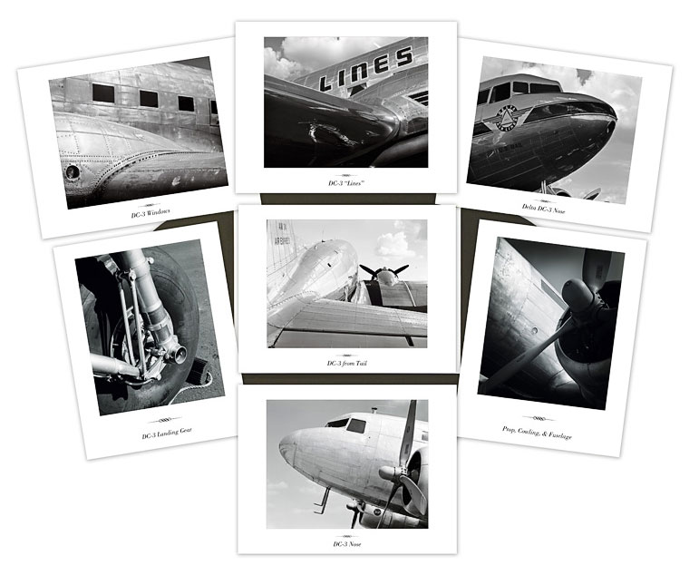 Seven images are included in this set; all images are printed on high quality Canson Baryta Photographique paper, using Epson Ultrachrome K3 ink. They are packaged in an 8-1/2 by 11 inch art paper enclosure. A title page, a brief history of each aircraft, and a colophon complete each set. These archival prints are suitable for framing individually or as a series. Each set is hand-assembled and carefully inspected prior to shipment. Satisfaction is guaranteed. The artist, John Slemp, is a professional photographer based in Atlanta, Georgia. With a career spanning nearly two decades, John's commercial work focuses on editorial, corporate, advertising, and now aviation photography. He has a particular passion for aircraft and his work was selected for inclusion in the Best of ASMP in 2008, one of only twenty professional portfolios chosen, out of over 400 submitted for consideration. He is a current member of both EAA and AOPA, and the International Society for Aviation Photography. |