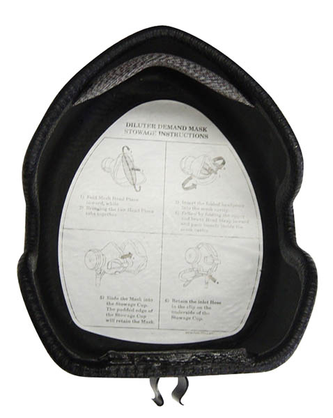 | The Aerox Stowage Cup is fabricated from carbon fiber and allows donning of the Aerox 4110-725 Diluter Demand Mask in less then 5 seconds. Stowage Cup has pre-drilled holes to facilitate mounting. |