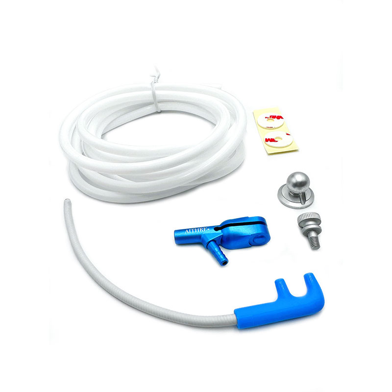 The Aithre boom cannula marries functionality with elegance to provide the most convenient, comfortable, and stylish cannula ever devised. A 100% silicone cannula combines with an articulating boom and an anodized and laser etched aluminum pivot adapter to provide flexible access to oxygen whenever required. Simply lower the boom into position when oxygen is required and raise the boom when oxygen is no longer needed. Further, the Aithre boom cannula duals as a mount for the portable Illyrian oximeter, helping support flight safety with continuous heart rate and blood oxygen readings throughout all phases of flight. No pilot or passenger enjoys a tube pushed against their ears or the increased cockpit noise that comes from acoustic barrier disruption, or the cumbersome donning of cannulas while engaging in flight activities. The Aithre boom cannula provides relief from discomfort, sound, and stress with an earcup mount location that avoids the ears and preserves both passive and active noise cancellation features - on any headset. The Aithre boom cannula has a unique articulating boom that feels similar to a mic boom. This articulation allows for pinpoint positioning and support of the silicone nasal piece just under the nose without any noticeable pressure on the face or nostrils. The boom itself is long enough to accommodate even the largest noggins, and this is even more so given that the nasal piece can slide to extend or reduce the overall length of the boom. Moreover, the aluminum adapter and ball joint enables pivoting and locking in a myriad of different positions for the perfect placement every time. The Aithre boom cannula has been tested and works with all of the Aithre portable and built-in smart pulse oxygen systems. Simply cut the silicone cannula to the desired length and push the male CPC type plug into the terminating end of the cannula. |