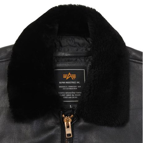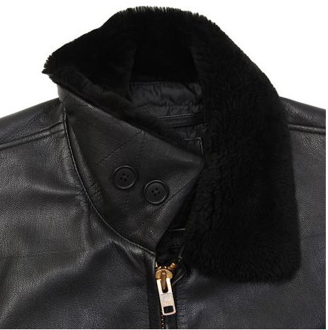 | Alpha's reproduction of the coveted naval leather flying jacket featuring a genuine mouton fur collar. |