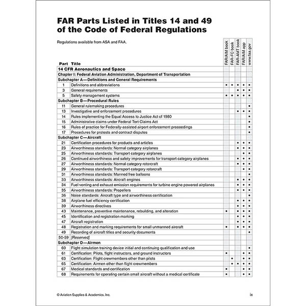 ASA’s FAR/AIM books have been the standard regulatory reference of the industry since 1940. ASA consolidates the FAA regulations and procedures into easy-to-use reference books of information pertinent to pilots, flight crew, and aviation maintenance technicians.
